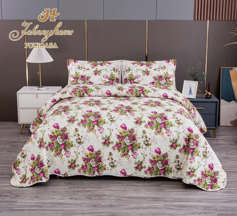 PUCIOASA Cuvertura Pat dublu din Bumbac Satinat,3 piese-V32A