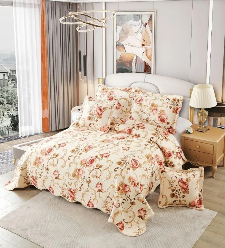 Practica și Eleganta! Asa poate fi descrisa aceasta cuvertura, cu model floral imprimat in material ce va aduce si mai multa eleganta dormitorului dumneavoastra. Acesata garnitura de pat este produsa in Romania, de brandul East Confort fiind recunoscut prin calitatea produselor sale. Aceasta garnitura de pat este confectionata din bumbac. Nu se decoloreaza, păstrând un timp îndelungat culorile vii si nu intra la apa oferind culoare si eleganta dormitorului dumneavoastra.Cuvertura de pat East Confort contureaza perfect un decor remarcabil in orice dormitor.Puteti oferi cadou celor dragi acesta cuvertura de pat. · 1 cuvertura de pat 220x240cm, · 2 fete de perna 50x70cm, · 2 fete de perna 45x45cm · Nu folositi inalbitori chimici,pot decolora imprimeul acestei cuverturi de pat · Spalati automat sau manual avand o temperatura a apei de 40 ºC,utilizand un detergent pentru rufe colorate · Uscati cuvertura de pat la uscatorul electric sau in aer liber ferind-o de razele directe ale soarelui · Calcati cuvertura de pat dupa uscare la maxim 130ºC · Depozitati cuvertura de pat ferind-o de umezeala si molii,in huse speciale