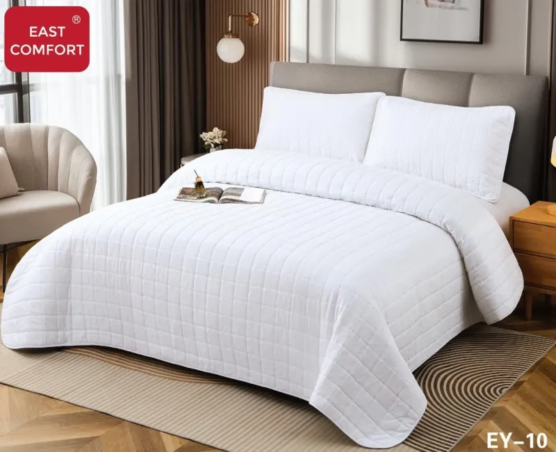 EAST COMFORT Cuvertura+Husa de pat cu elastic+2 Fete de perna,Alb-EY10