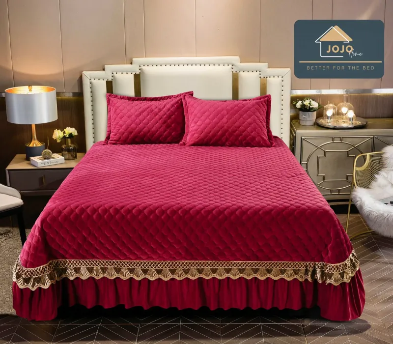 Cuverturile pat Catifea sunt utilizate pentru decorarea dormitorului dumneavoastra si in acelasi timp de a proteja lenjeria pentru pat de impuritati. Confectionate din bumbac 80% si satin 20%, cuverturile pentru pat sunt decorate cu imprimeuri sofisticate realizate cu masinarii de ultima generatie pentru a oferi o rezistenta sporita in timp. Cuverturile sunt ideale pentru toate anotimpurile. Materialele folosite sunt de calitate buna, produsul putând fi folosit un timp foarte îndelungat. Gama de modele este larga incepand de la modele clasice pana la cele mai moderne designuri, în diferite culori, clare si luminoase.Cuverturile de pat contureaza perfect un decor remarcabil in orice dormitor.Pachetul contine: