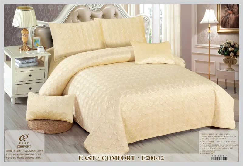 Cuverturile pat  Catifea sunt utilizate pentru decorarea dormitorului dumneavoastra si in acelasi timp de a proteja lenjeria pentru pat de impuritati. Confectionate din bumbac 80% si satin 20%, cuverturile pentru pat sunt decorate cu imprimeuri sofisticate realizate cu masinarii de ultima generatie pentru a oferi o rezistenta sporita in timp. Cuverturile sunt ideale pentru toate anotimpurile. Materialele folosite sunt de calitate buna, produsul putând fi folosit un timp foarte îndelungat. Gama de modele este larga incepand de la modele clasice pana la cele mai moderne designuri, în diferite culori, clare si luminoase.Cuverturile de pat  contureaza perfect un decor remarcabil in orice dormitor.