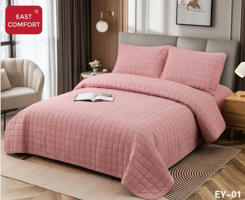 EAST COMFORT Cuvertura+Husa de pat cu elastic+2 Fete de perna,Roz-EY01
