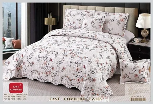 EAST COMFORT Cuvertura matlasata din bumbac 5 piese,Rozete-ES285