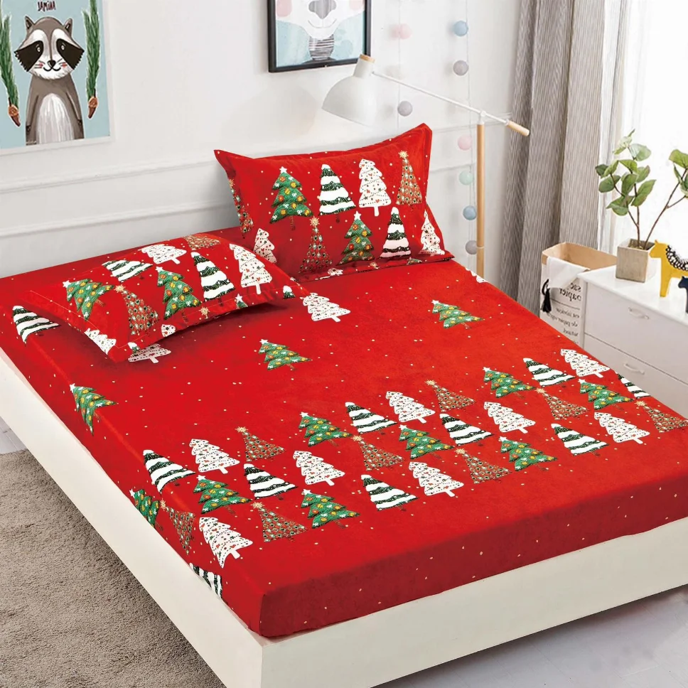 Pregătește-ți dormitorul pentru cea mai magică perioadă a anului cu Husa de pat din Finet cu elastic, roșie cu brăduți verzi și albi-HMJ4. Creată special pentru a aduce bucuria Crăciunului în casa ta, această husă de pat este confecționată dintr-un material Finet, cunoscut pentru textura sa moale și călduroasă. Datorită elasticului cusut de jur împrejur, se fixează perfect pe saltea, eliminând cutele inestetice. Astfel, patul tău va arăta impecabil și festiv în fiecare zi.