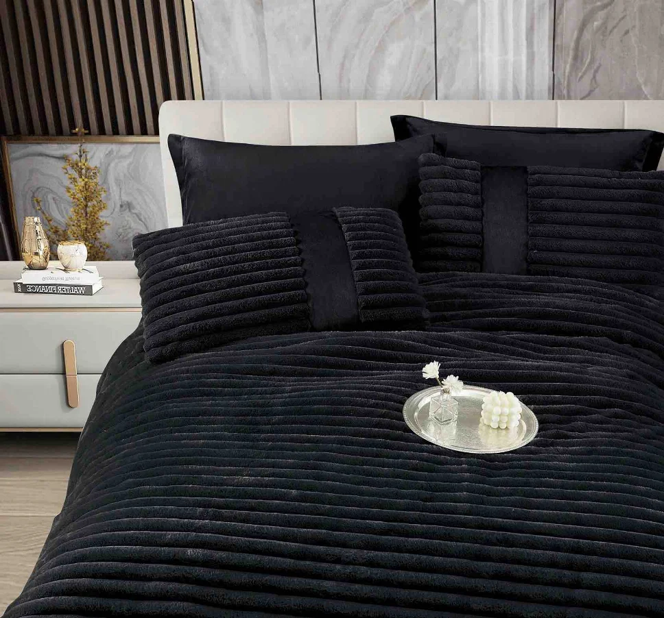 Descoperă confortul setului Lenjerie cu Pilota din Blanita artificiala de iepure si cearceaf cu elastic ,6 piese, negru cu striatii discrete-PBJ15