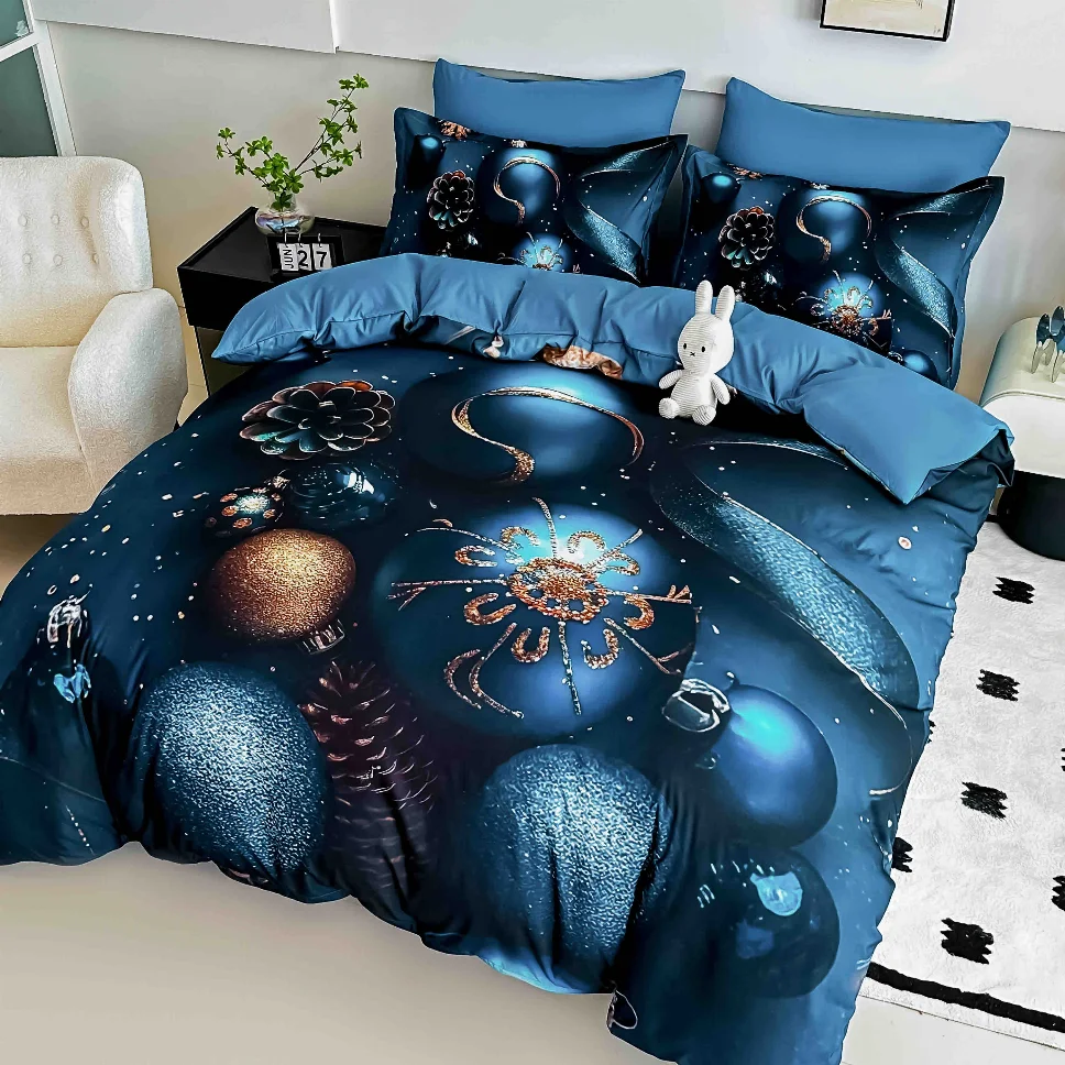 JOJO HOME Lenjerie de pat din finet, albastru cu globuri festive-LD27