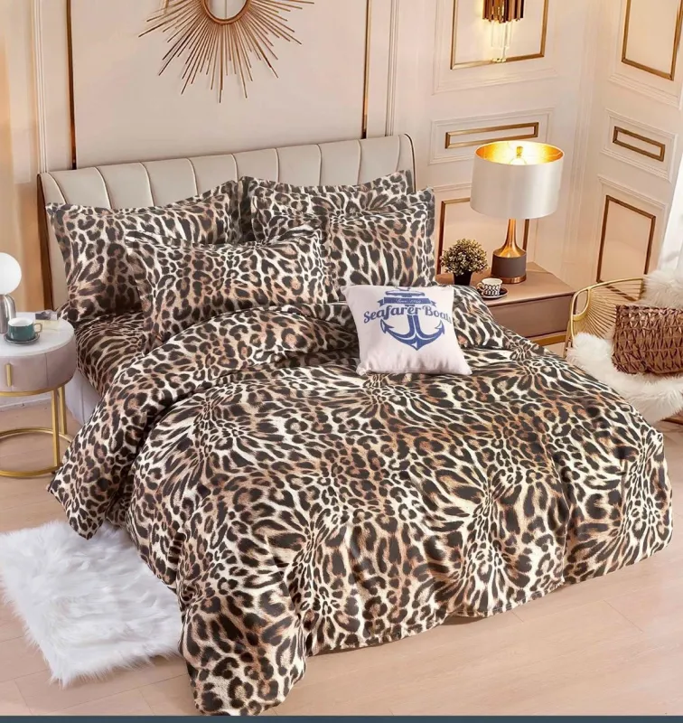 Transformă-ți dormitorul într-o oază de relaxare cu o Lenjerie de pat,6 Piese, finet,Maro,Animal print-FJ179. Realizată dintr-un material finet de calitate superioară, această lenjerie îți va învălui simțurile într-o textură moale și plăcută la atingere, asigurându-ți un somn odihnitor noapte de noapte. Materialul este special tratat pentru a-și păstra culorile vii și pentru a rezista la utilizări repetate, menținând aspectul proaspăt și îngrijit al patului tău.