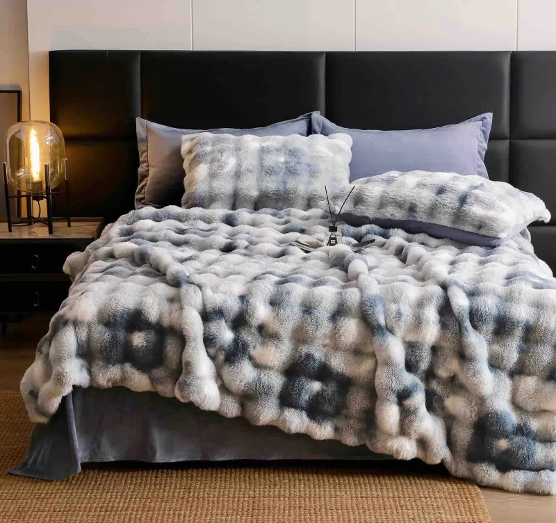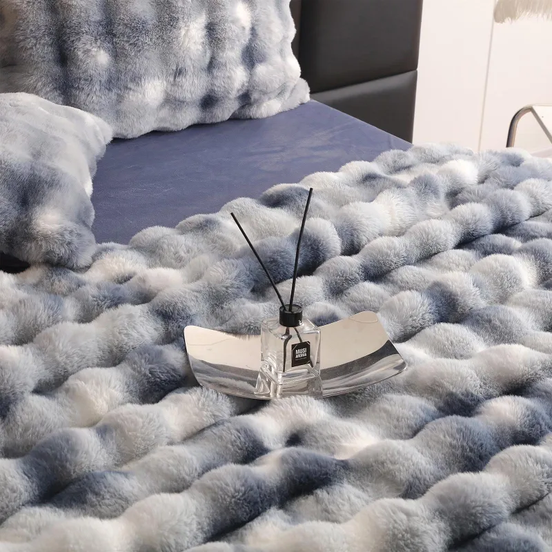 JOJO HOME Lenjerie pat dublu, Extra Pufoasa,din Blanita artificiala de Iepure, 6 piese,Gri degrade-BV16