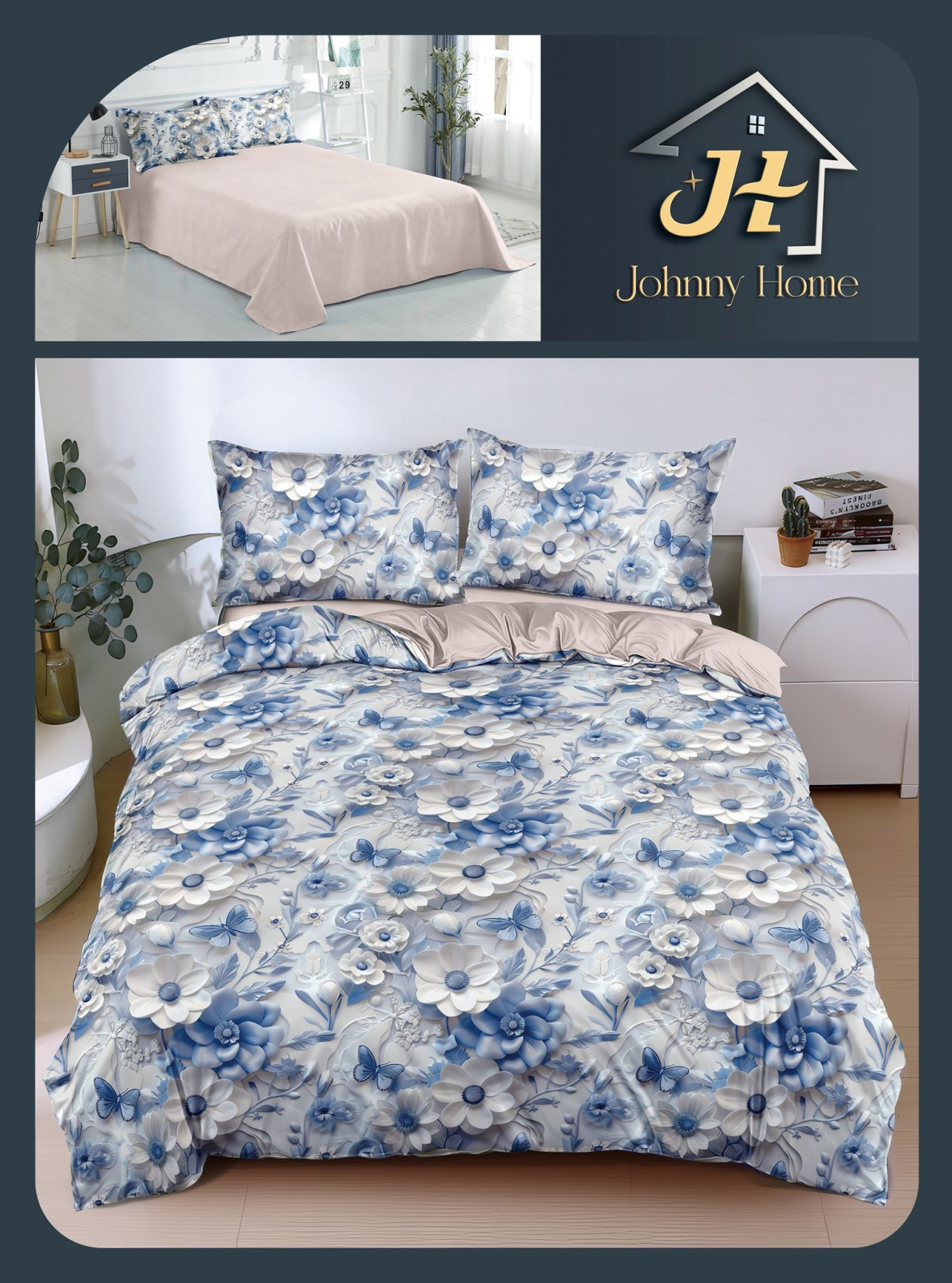 PUCIOASA Lenjerie de pat 4 piese,bumbac satinat, Floricele albastre-BS693