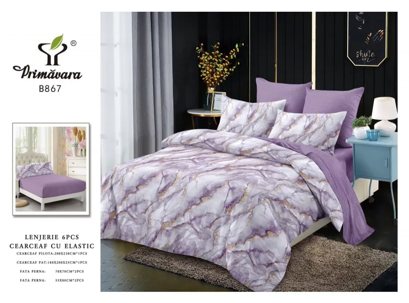 Spune adio cutelor inestetice! Piesa de rezistență a acestui set este cearceaful de pat cu elastic pe întreaga margine, proiectat să îmbrace perfect salteaua. Te vei bucura de un pat aranjat impecabil în fiecare dimineață, fără efort.