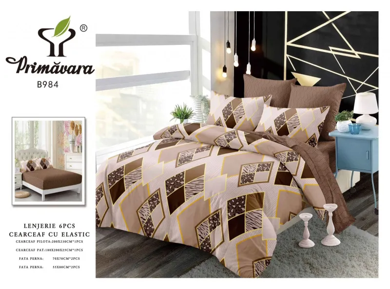 Descoperă setul Lenjerii de pat Finet 6 piese cu Elastic-FEL199, partenerul tău ideal pentru un somn profund și relaxant. Creat dintr-un material special, plăcut la atingere și rezistent, acest set este conceput pentru a-ți aduce confort și a înfrumuseța aspectul dormitorului tău.