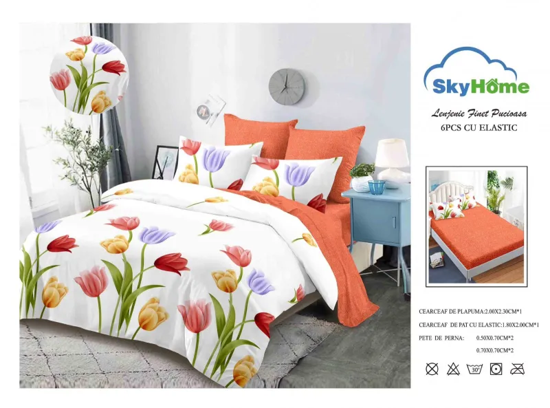 Descoperă Lenjerii de pat Finet 6 piese cu Elastic-SKE16, setul care aduce în dormitorul tău echilibrul perfect între stil și confort practic. Realizată dintr-un material plăcut la atingere și rezistent, această lenjerie este concepută pentru a-ți oferi un somn liniștit și odihnitor, noapte de noapte.