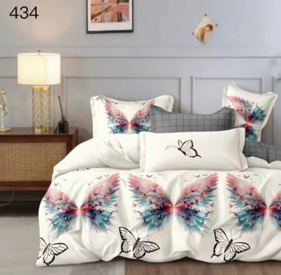EAST COMFORT Lenjerie de pat Finet 6 piese, alb cu aripi de fluture colorate-GR434