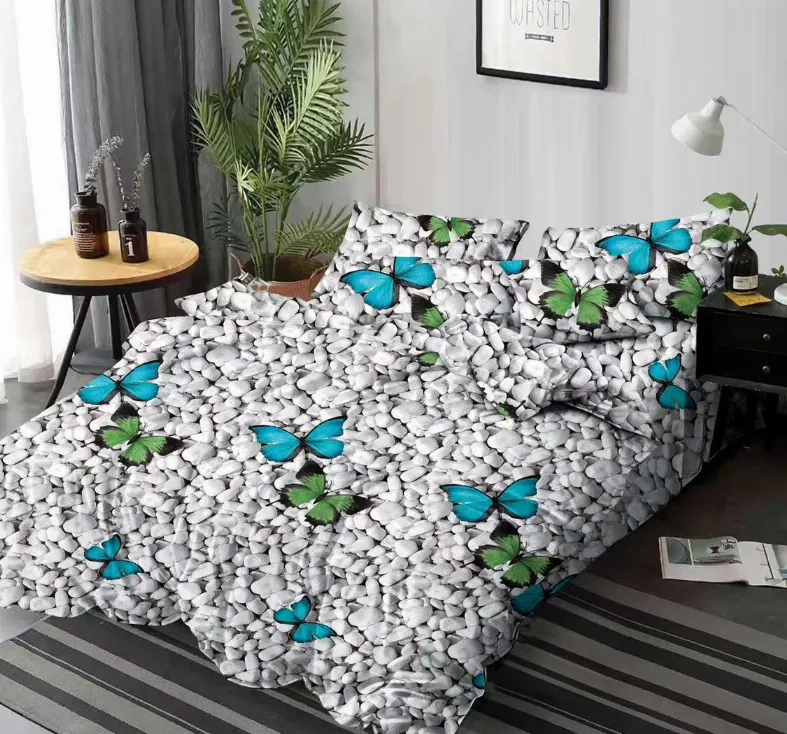 Aoleu, ce drăgălașă e lenjeria asta! Finet, cum îi zice... ce moale și plăcută la atingere. Culoarea albă, cu fluturii ăia turcoaz și verzi, parcă mi-a adus primăvara în dormitor. E tare fină și de calitate, chiar m-am bucurat că am ales-o, să le pun nașilor, să se simtă bine.