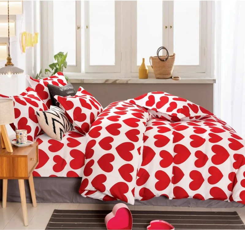 Lenjerie de pat Finet 6 piese,Alb cu inimioare Rosii -KY15