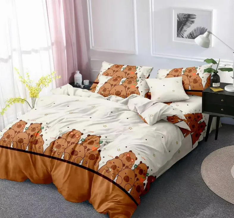 Lenjerie de pat Finet 6 piese, alb cu ursuleti maro-KY85