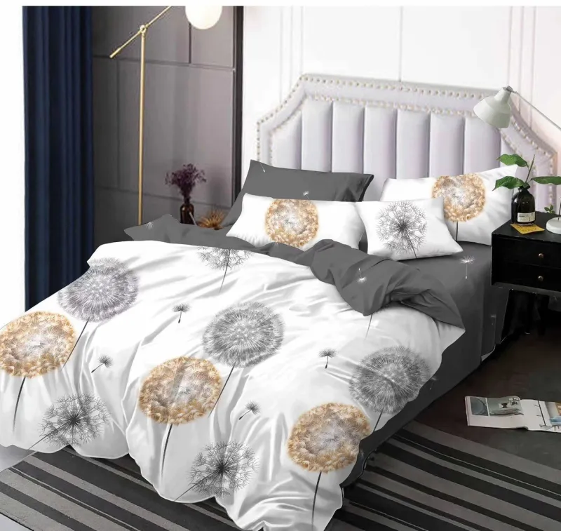 Lenjerie de pat Finet 6 piese,Alb/Gri cu Papadii aurii-KY68