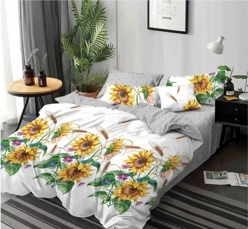 Profită de oferta specială și transformă-ți dormitorul într-o oază de relaxare! Cu seturile noastre Lenjerie de pat Finet 6 piese,Alb/Gri,Floarea-Soarelui -KY32, primești de două ori mai mult confort la un preț avantajos. Aceste lenjerii sunt create dintr-un material plăcut la atingere, moale și catifelat, perfect pentru un somn odihnitor. Materialul dens este ideal pentru nopțile mai răcoroase, nu se șifonează ușor și își păstrează culorile vibrante, spălare după spălare, aducând un plus de stil și eleganță în camera ta.