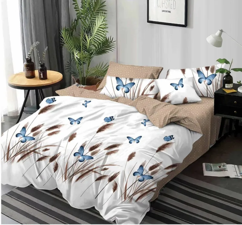 Lenjerie de pat Finet 6 piese,Alb/Maro cu fluturi-KY67