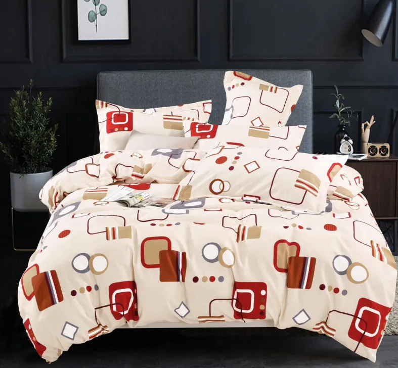 Lenjerie de pat Finet 6 piese, crem cu patrate si cerculete maro-KY94