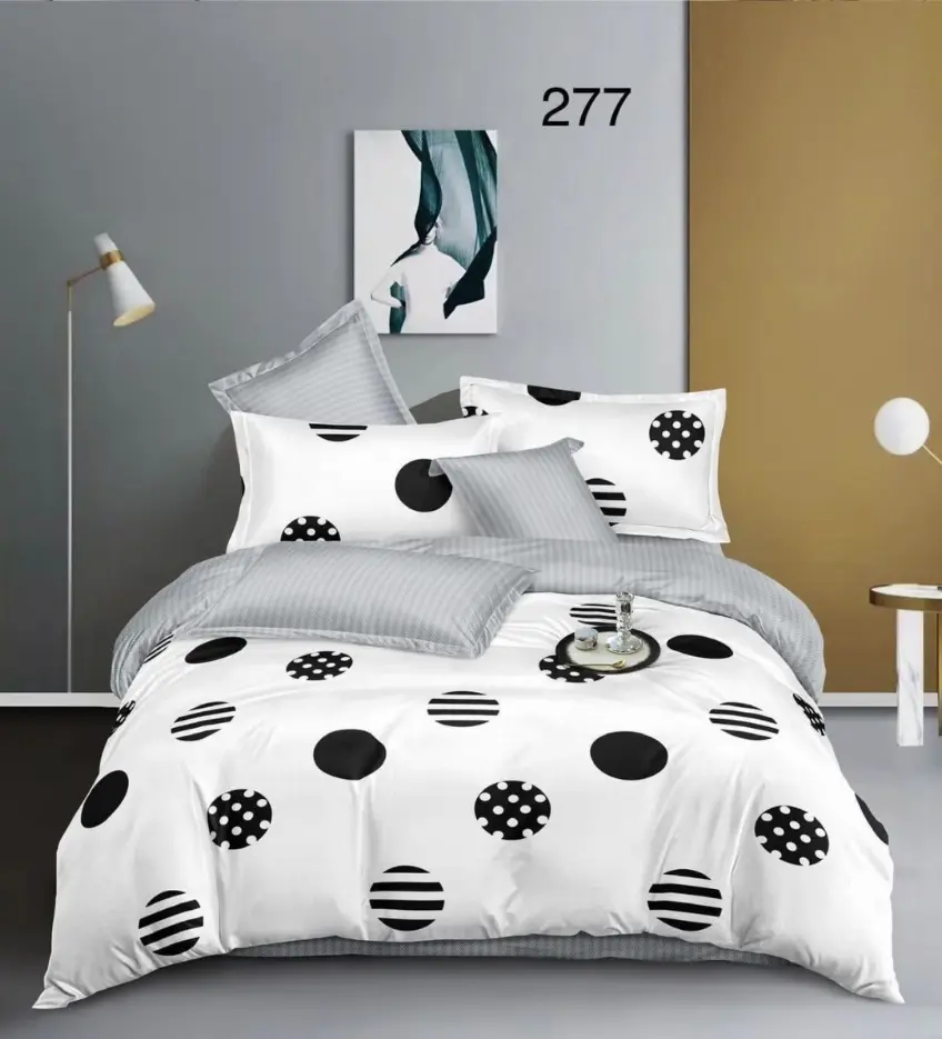 Profită de oferta specială și transformă-ți dormitorul într-o oază de relaxare! Cu seturile noastre Lenjerie de pat Finet 6 piese,Pat dublu,Alb/Gri cu Buline negre-GR277, primești de două ori mai mult confort la un preț avantajos. Aceste lenjerii sunt create dintr-un material plăcut la atingere, moale și catifelat, perfect pentru un somn odihnitor. Materialul dens este ideal pentru nopțile mai răcoroase, nu se șifonează ușor și își păstrează culorile vibrante, spălare după spălare, aducând un plus de stil și eleganță în camera ta.