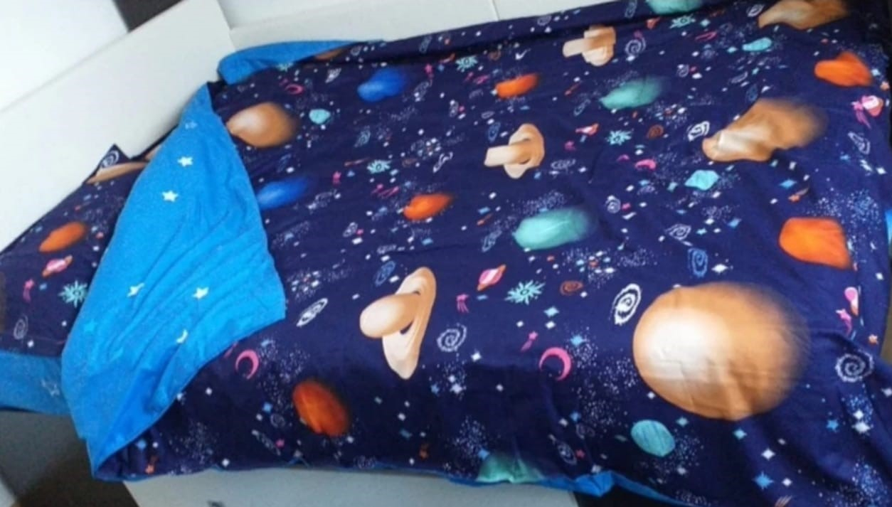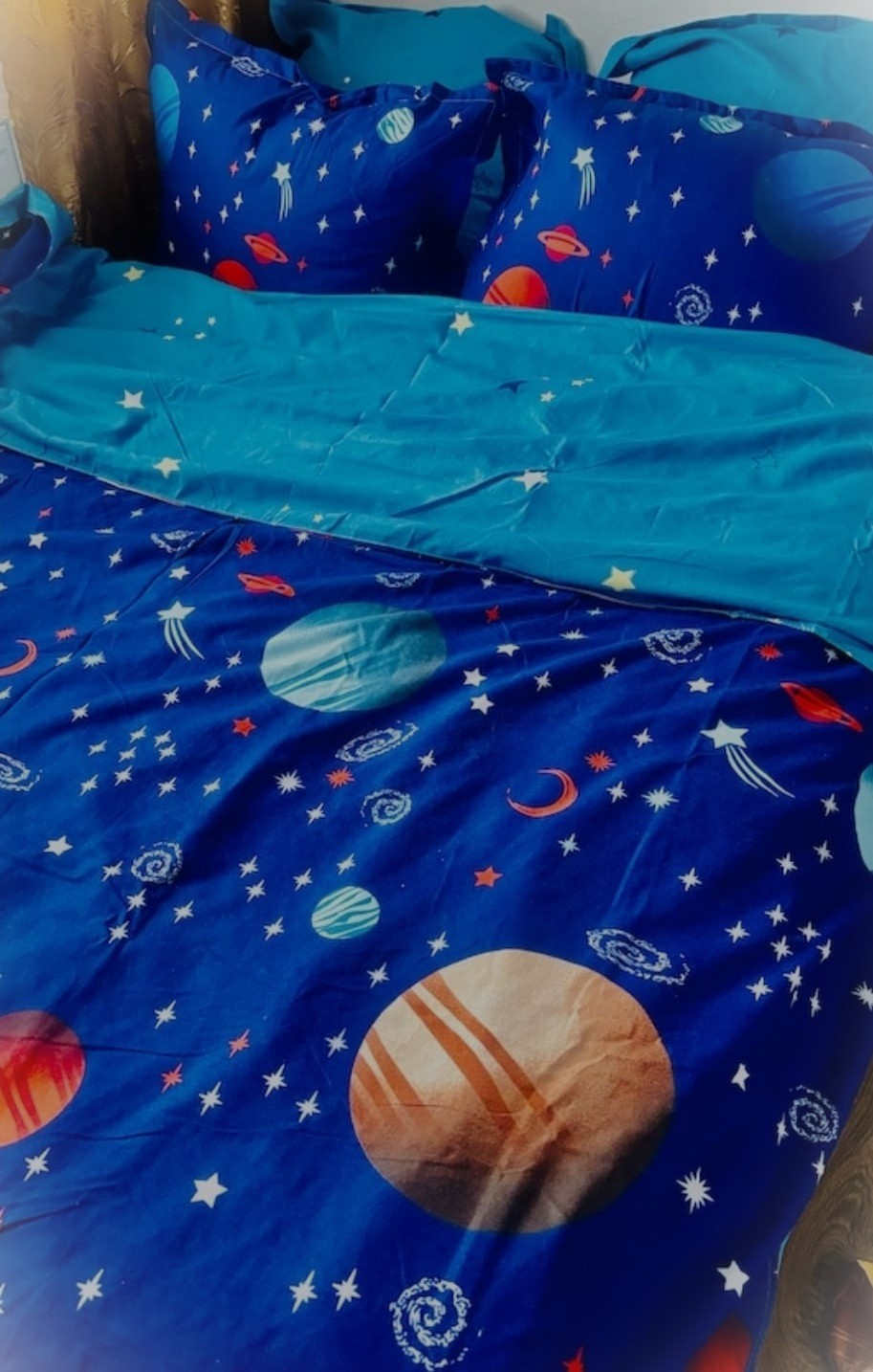 Ce drăguț a nimerit! Asta cu planetele, albastrul ăla frumos, m-a dat pe spate. Baiatul meu a zis că zici că-s gata de culcare când o vede. E și Finet, moale așa, de te-ai pierde în ea. O să mai iau una, să fie!