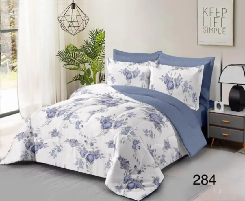 EAST COMFORT Lenjerie de pat Finet 6 piese,Pat dublu,Flori albastre-GR284