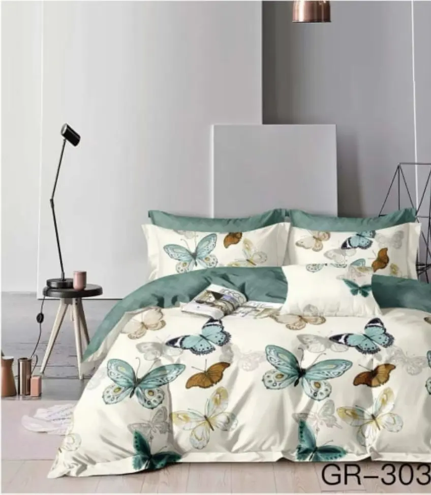EAST COMFORT Lenjerie de pat Finet 6 piese,Pat dublu,Fluturi verzi-GR303