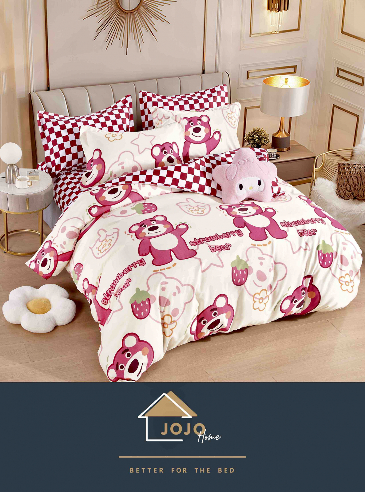 JOJO HOME Lenjerie de pat Finet 1 Persoana,Jojo,Roz/alb cu Ursuleti-YJ14