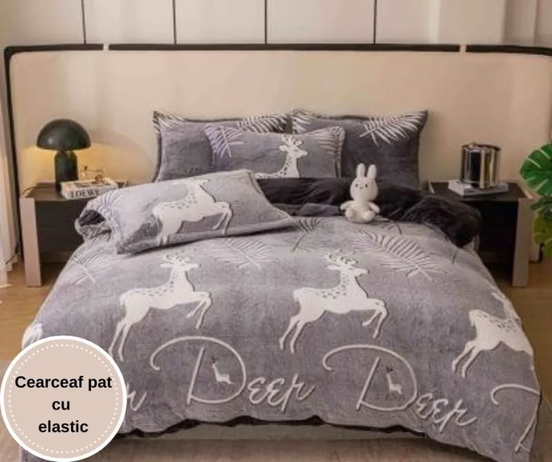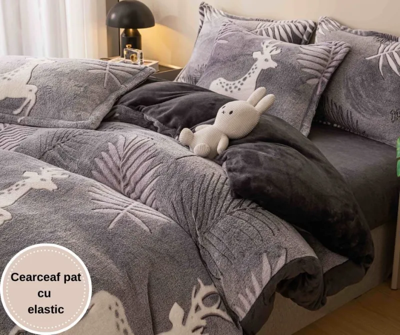 Material: microfibră plușată, groasă și foarte densă (are textura catifelată și este foarte placută la atingere)