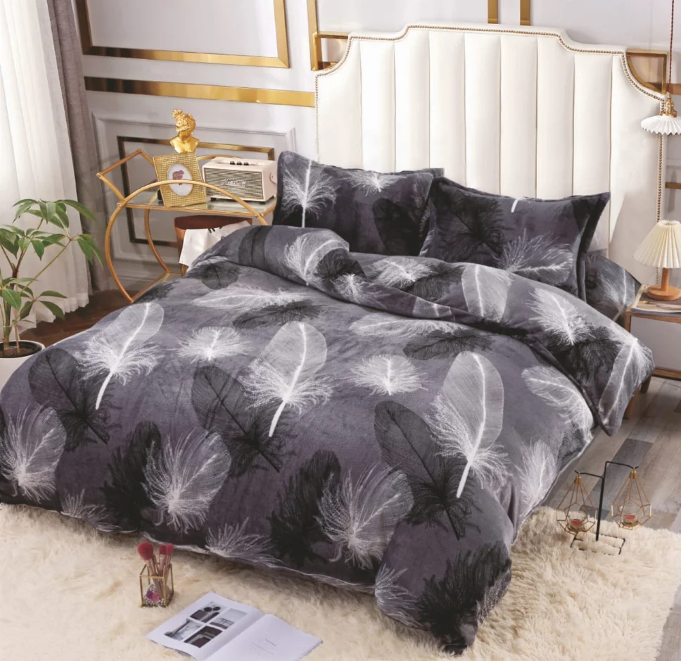 Lenjerie de pat Cocolino 4 piese, gri cu pene albe și negre-LN27