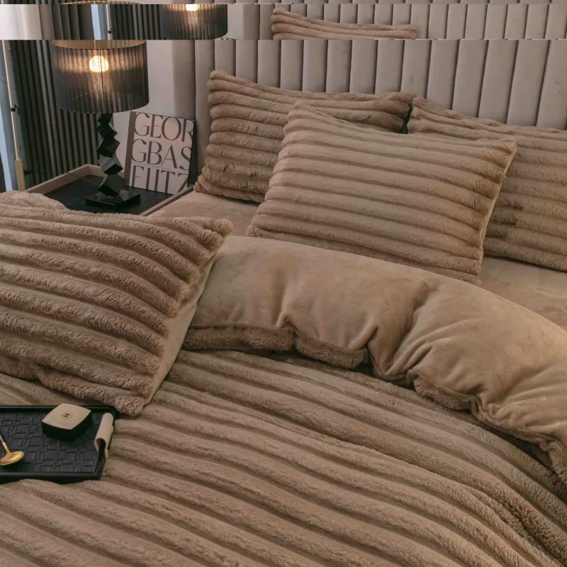 Transformă-ți dormitorul într-un sanctuar al confortului cu Lenjeria de Pat Cocolino cu Blăniță de Iepure Artificială - Set cu 4 Piese pentru Pat Dublu!