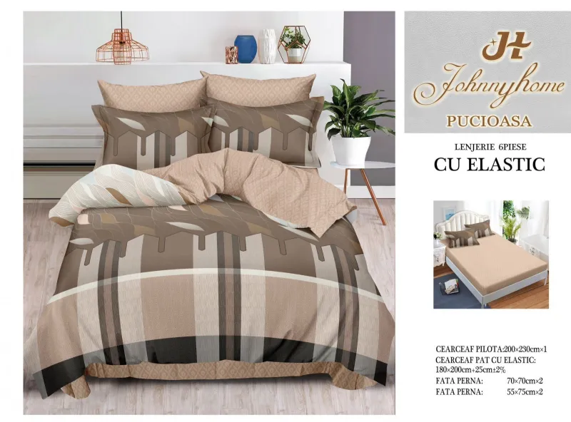 PUCIOASA Lenjerii de pat Finet 6 piese cu Elastic-T216 + CADOU