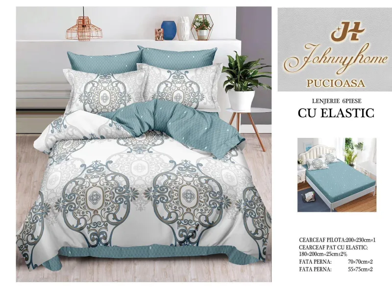 PUCIOASA Lenjerii de pat Finet 6 piese cu Elastic-T219 + CADOU