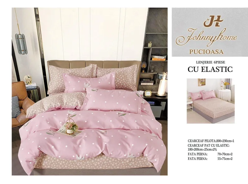 PUCIOASA Lenjerii de pat Finet 6 piese cu Elastic-T251 + CADOU