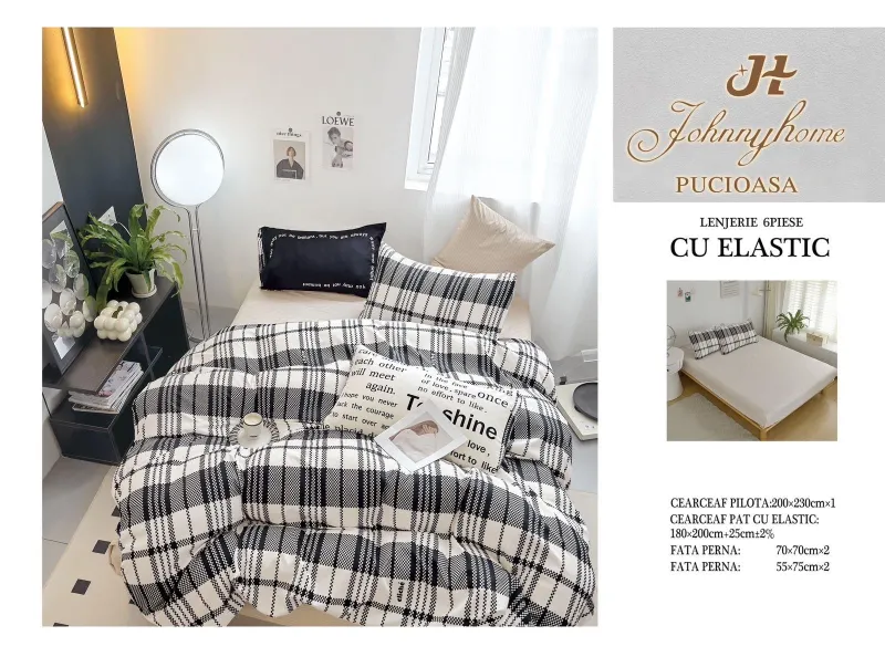 Lenjerii de pat Finet 6 piese cu Elastic-T257 descoperă confortul și rafinamentul oferite de setul de lenjerie de pat tip finet, format din 6 piese, într-o nuanță elegantă. Această colecție excepțională este realizată dintr-un bumbac tratat special, conferind tesaturii sale o senzație moale și durabilitate remarcabilă în timp. Este alegerea perfectă pentru a-ți menține patul mereu proaspăt și impecabil.
