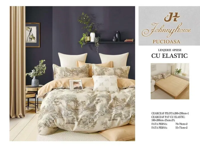 PUCIOASA Lenjerii de pat Finet 6 piese cu Elastic-T258 + CADOU