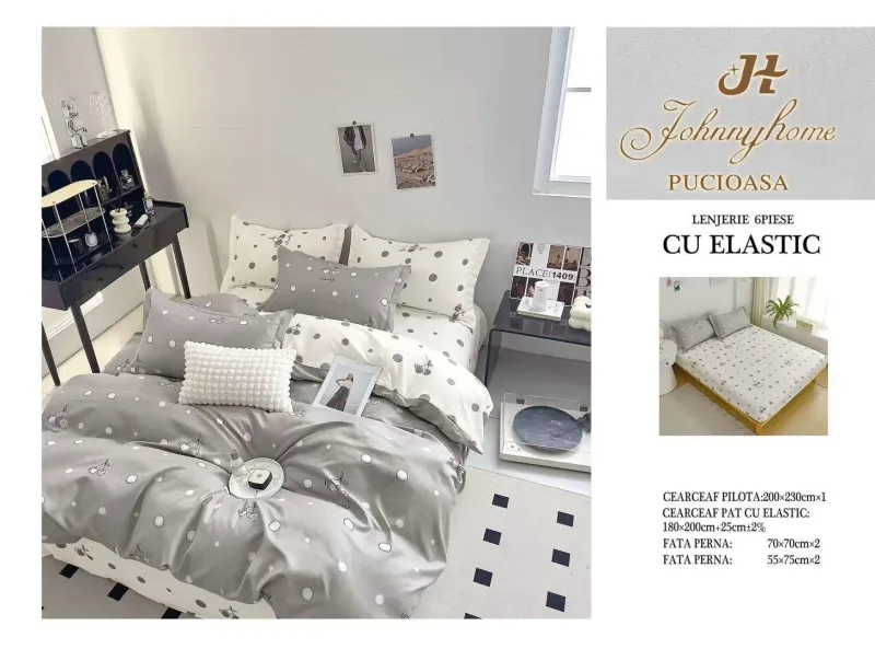 PUCIOASA Lenjerii de pat Finet 6 piese cu Elastic-T259 + CADOU
