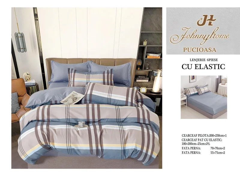 PUCIOASA Lenjerii de pat Finet 6 piese cu Elastic-T268 + CADOU