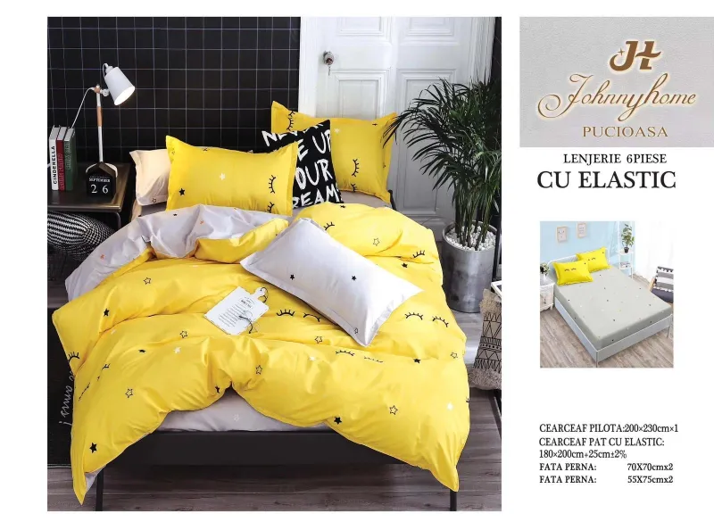 PUCIOASA Lenjerii de pat Finet 6 piese cu Elastic-T279 + CADOU