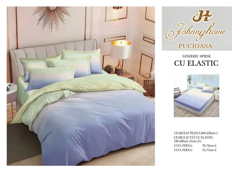Lenjerii de pat Finet 6 piese cu Elastic-T282, descoperă confortul și rafinamentul oferite de setul de lenjerie de pat tip finet, format din 6 piese, într-o nuanță elegantă. Această colecție excepțională este realizată dintr-un bumbac tratat special, conferind tesaturii sale o senzație moale și durabilitate remarcabilă în timp. Este alegerea perfectă pentru a-ți menține patul mereu proaspăt și impecabil.