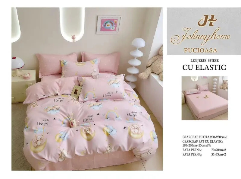 PUCIOASA Lenjerii de pat Finet 6 piese cu Elastic-T315 + CADOU