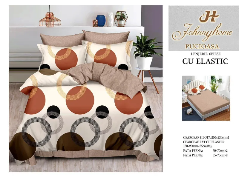 Lenjerii de pat Finet 6 piese cu Elastic-T70 descoperă confortul și rafinamentul oferite de setul de lenjerie de pat tip finet, format din 6 piese, într-o nuanță elegantă. Această colecție excepțională este realizată dintr-un bumbac tratat special, conferind tesaturii sale o senzație moale și durabilitate remarcabilă în timp. Este alegerea perfectă pentru a-ți menține patul mereu proaspăt și impecabil.