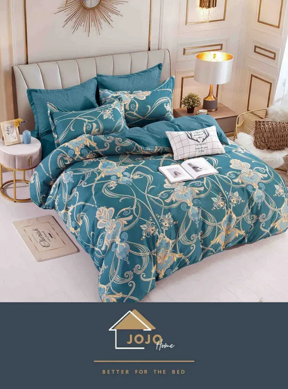 JOJO HOME Lenjerii de pat Finet 6 piese cu Elastic ,Turcoaz ,baroc -FCE23 + CADOU