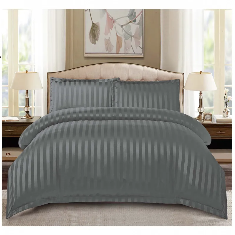 PRIMAVARA Lenjerie de pat Damasc,4 Piese,Cearceaf cu Elastic,Gri inchis-RP83 + CADOU