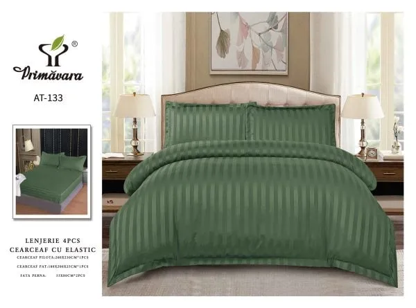PRIMAVARA Lenjerie de pat Damasc,4 Piese,Cearceaf cu Elastic,Kaki-RP133 + CADOU
