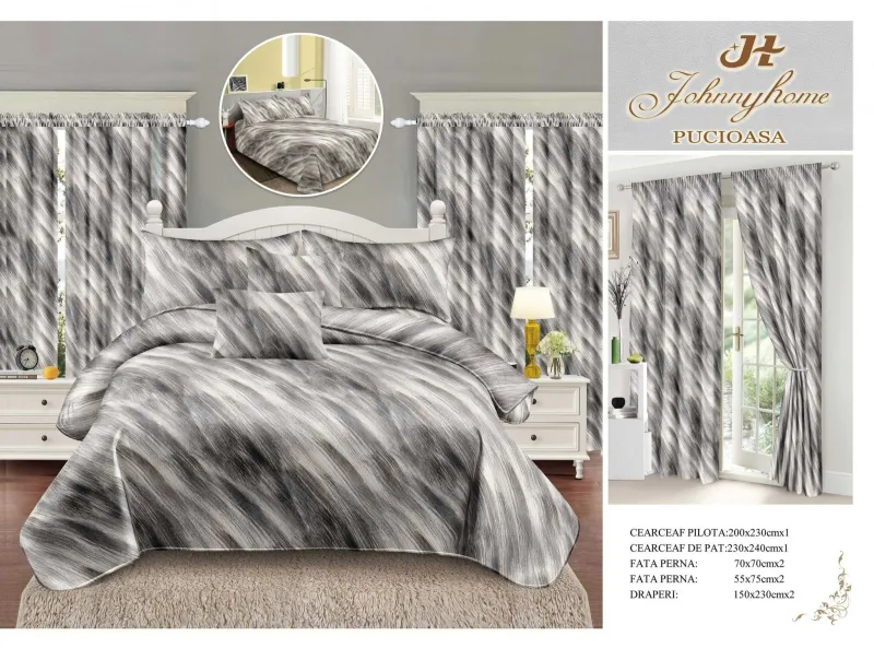 Transformă-ți Dormitorul cu Setul Complet: Lenjerie de Pat din Finet și Draperii Asortate