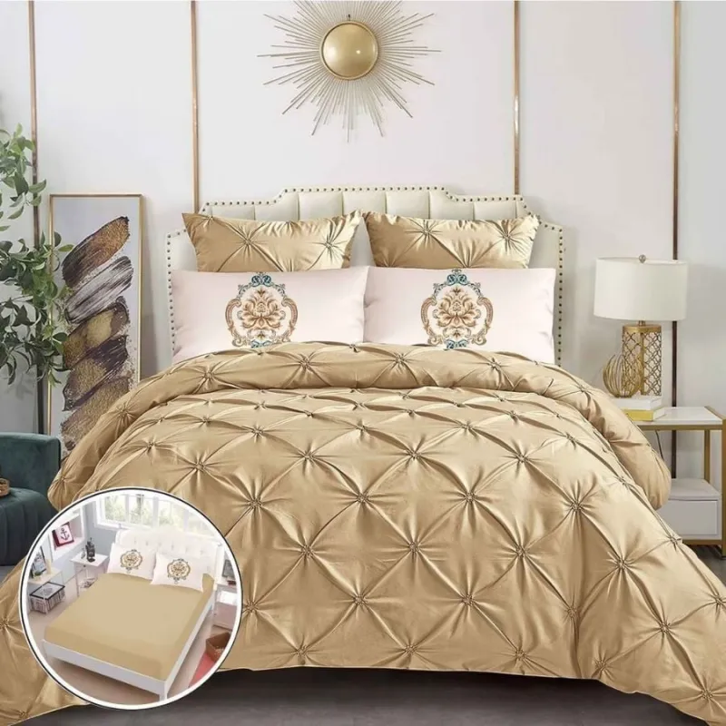 Lenjerie de pat cu Pliuri Elegante din finet,Pat dublu,Bej-CH3