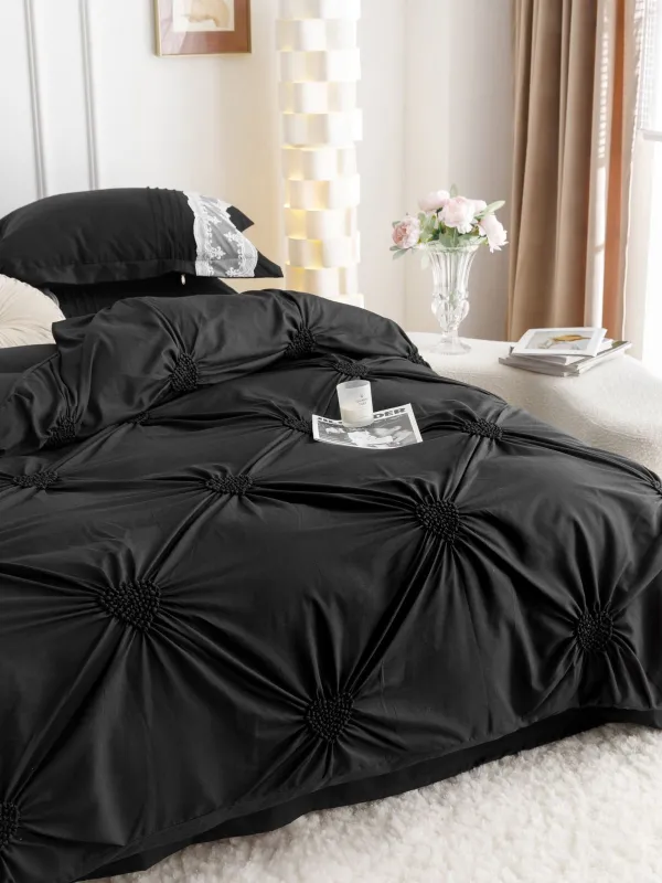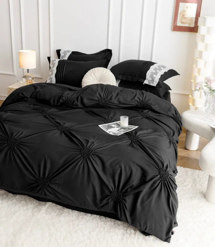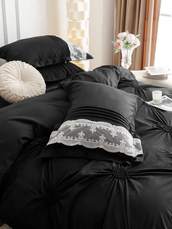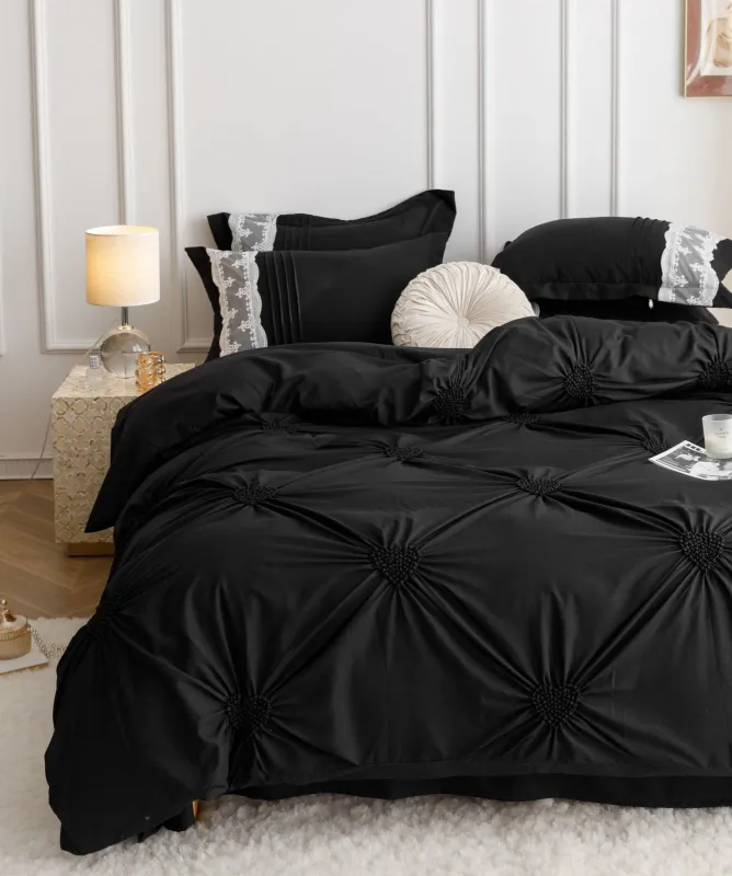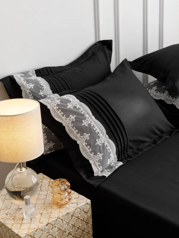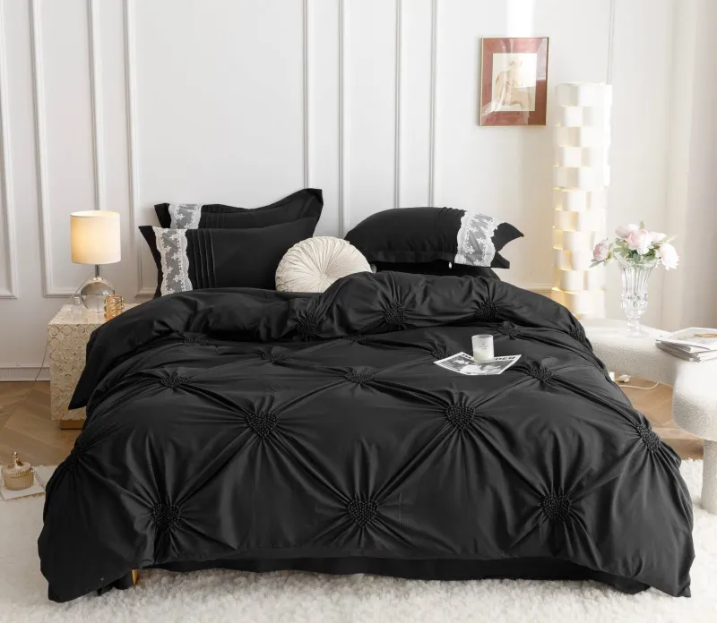 JOJO HOME Lenjerie de pat din finet, cu pliuri si inimioare brodate,Negru-BR1