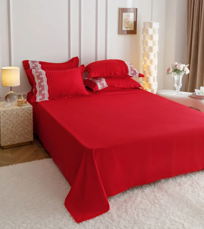 JOJO HOME Lenjerie de pat din finet, cu pliuri si inimioare brodate,Rosu-BR2